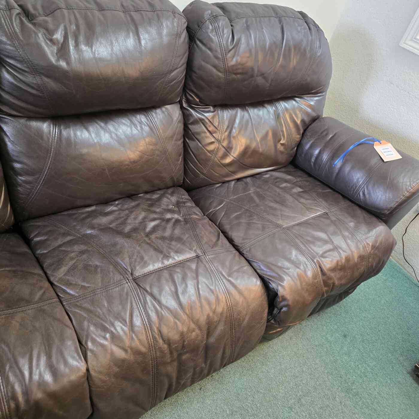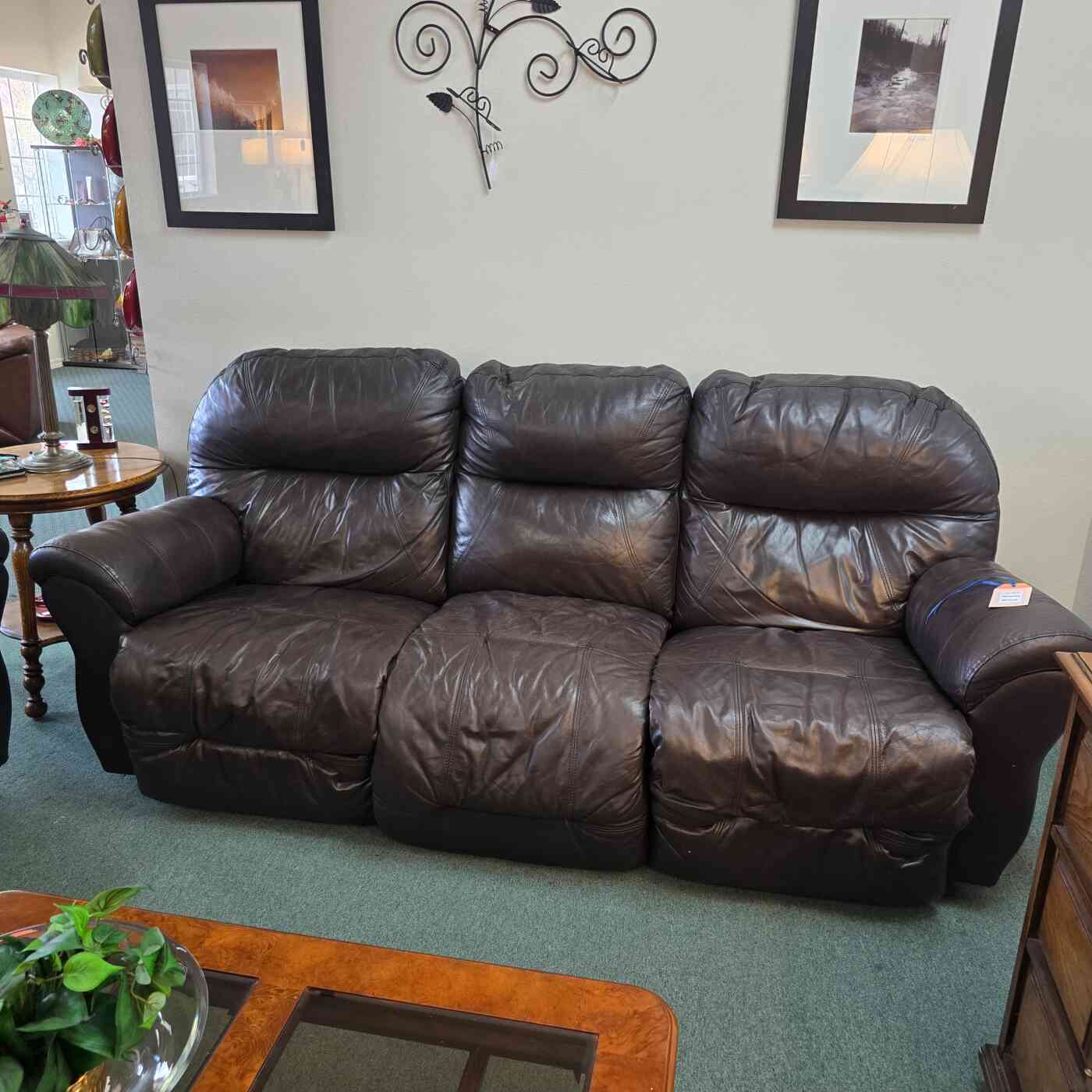 / Black Leather Double Recliner Couch